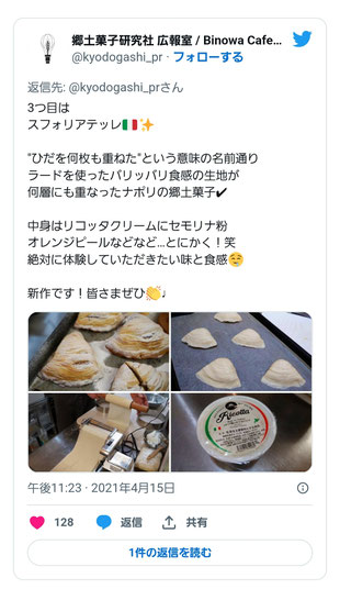 ビノワカフェでいただいた中では太陽餅、スフォリアテッレがとても印象に残っています。