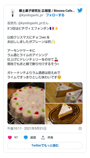 このページの後半に過去にBinowa Cafeでご提供したお菓子たちもノミネートしております。