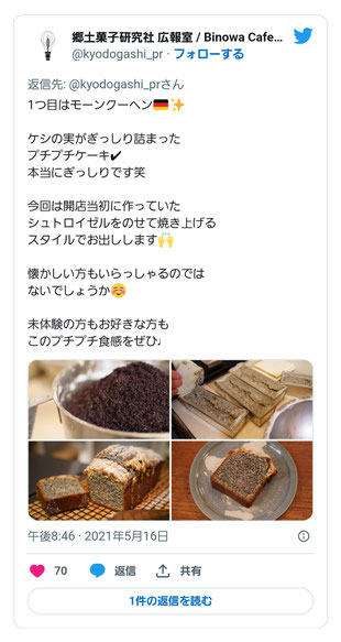 ・スパイスとチョコのミニカヌレ→トースターでリベイクするとスパイスとチョコの素敵な香りが部屋中に広がって凄く幸せでした。お味も販売中の栗カヌレと同じくらい最高で定番化を希望しております。